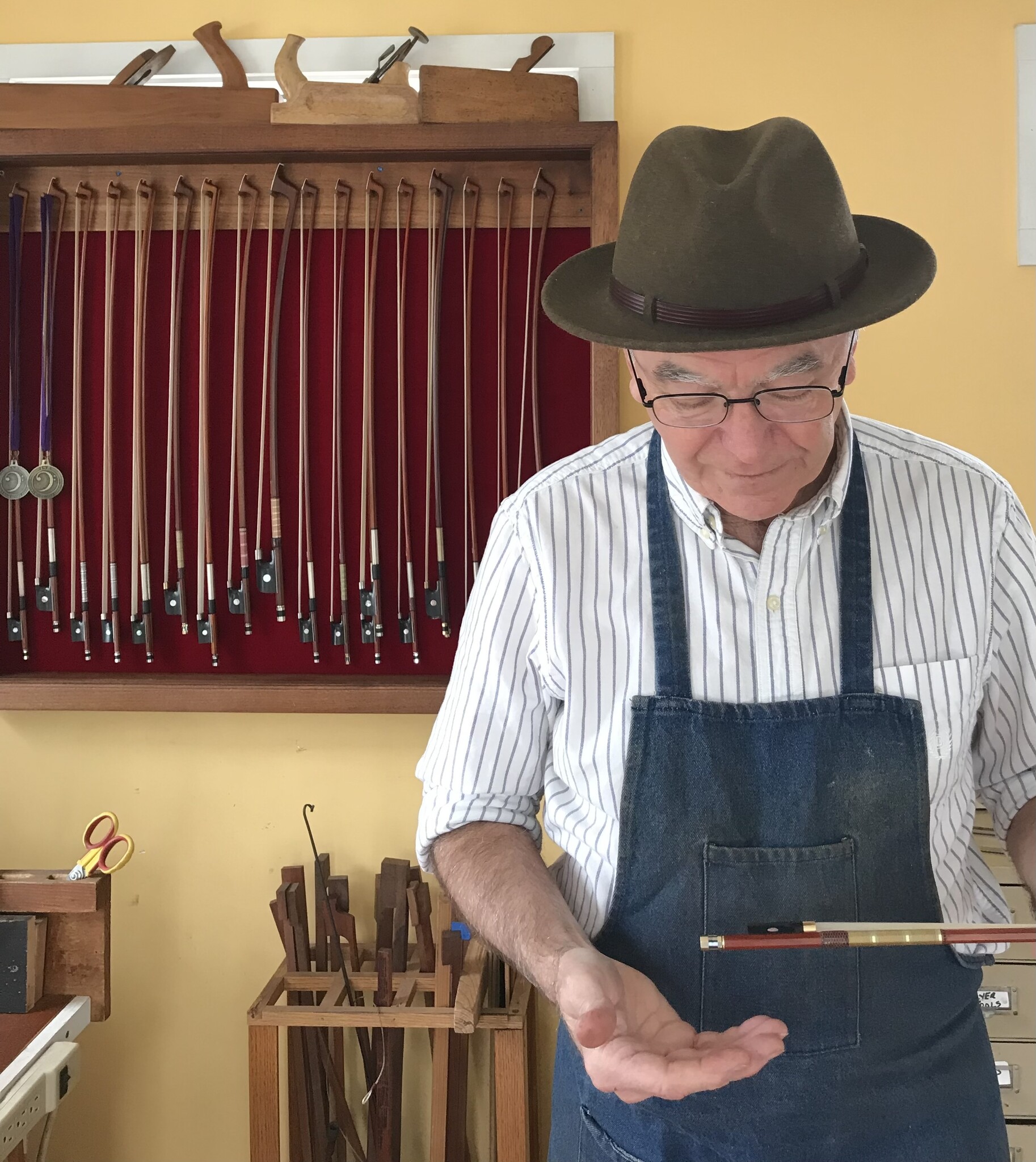 Before studying as a bow maker, Thomas was a professional bassist and graduated from Berklee College of Music.