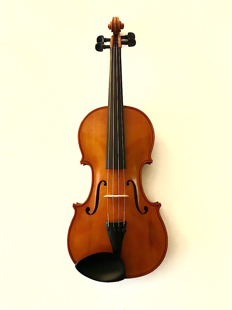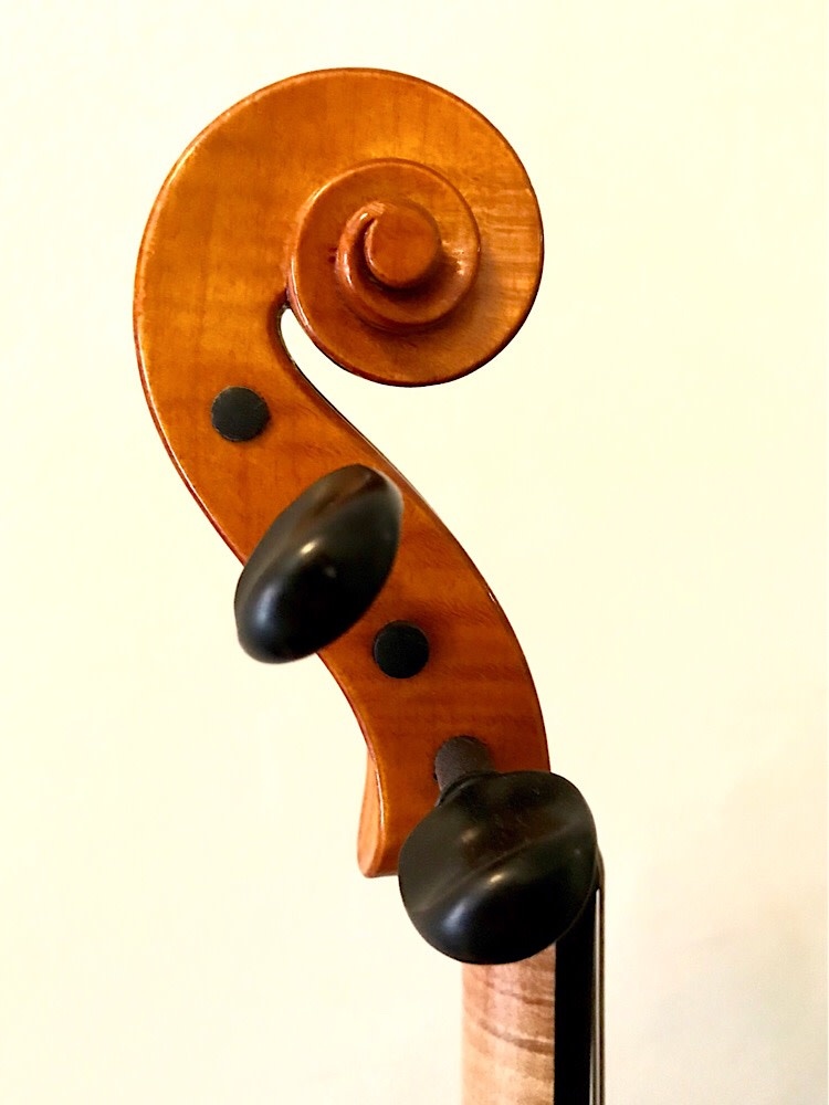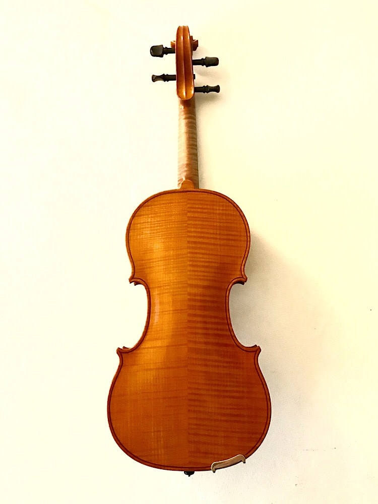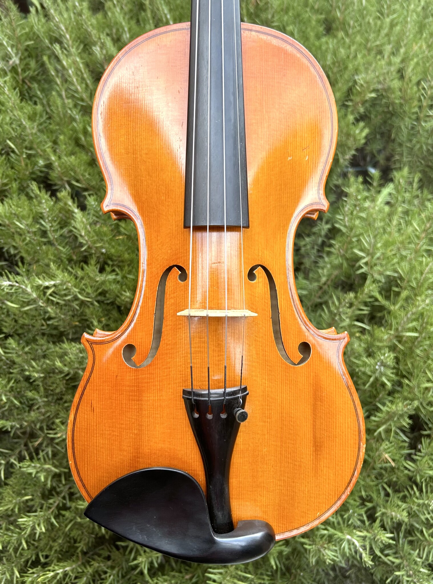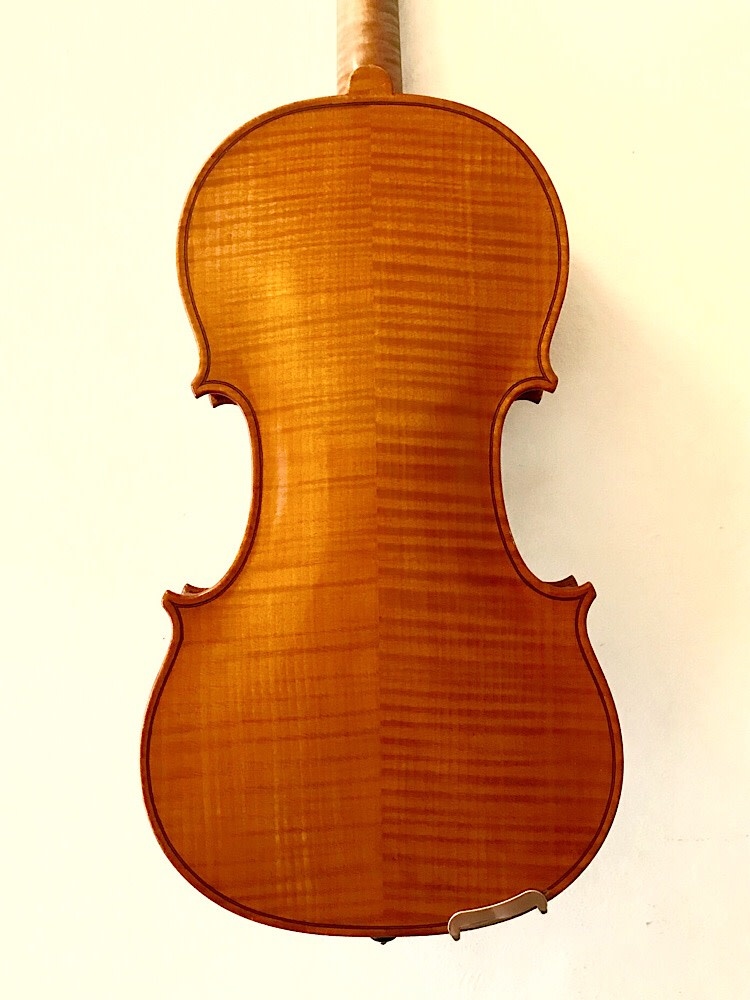 The instrument is covered with a warm golden orange varnish over a light gold ground. The violin is in excellent condition.