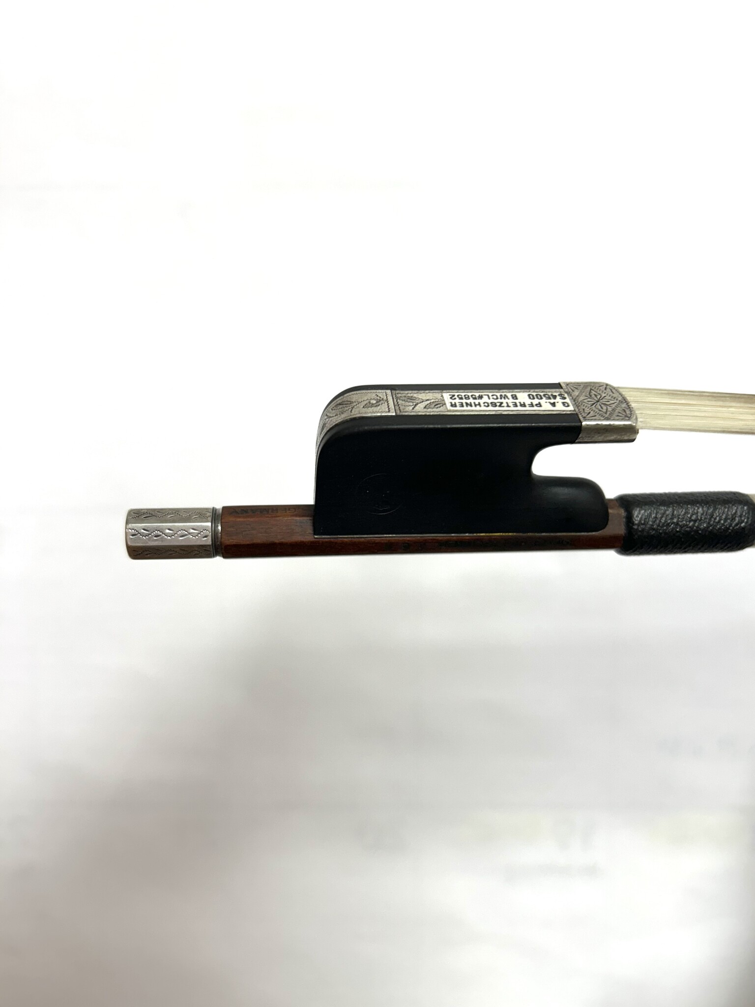 G.A. PFRETZSCHNER cello bow, engraved silver, 78.8 grams | Metzler Violins