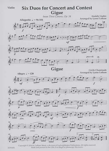 Latham, Lynne, (arr.): Six Duos for Concert and Contest for Violin and Cello