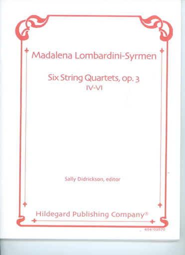 Lombardini-Syrmen, Madalena: Six String Quartets, Op.3 No. 4-6 (2 violins, viola, cello) score and parts