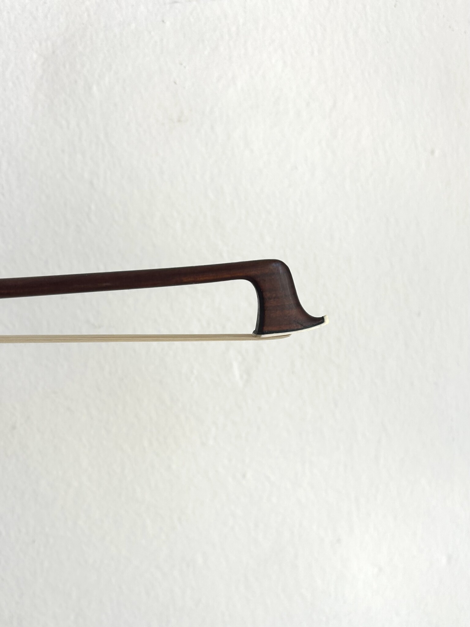 beautifully flamed pernambuco stick, with silver fittings, and ebony frog