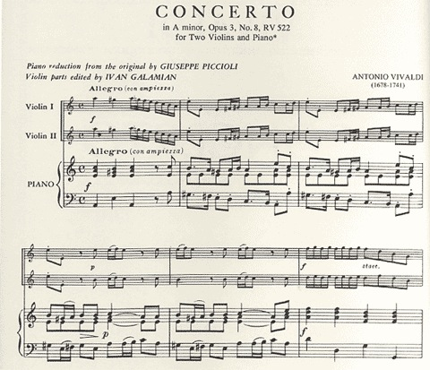 Vivaldi, Antonio (Galamian): Concerto in A minor Op.3 #8 (2 violins & piano)