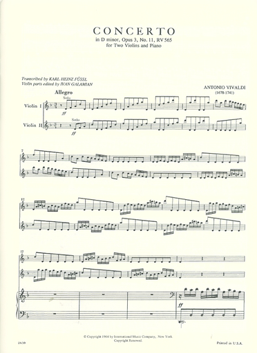 Vivaldi : Concerto in d minor F.I.#11 (2 violins & piano) IMC