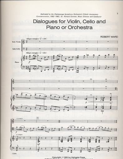 Ward, Robert: Dialogues for Violin, Cello & Piano