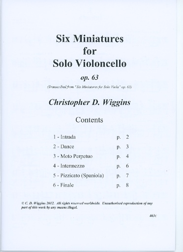 Wiggins, Christopher: Six Miniatures, op.63 (solo cello)