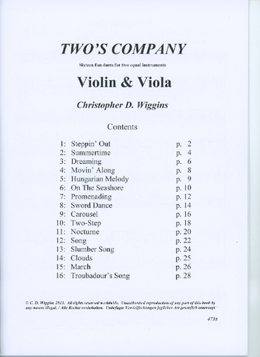 Wiggins, Christopher: Two's Company-Sixteen Little Duets for two equal instruments (violin & viola)